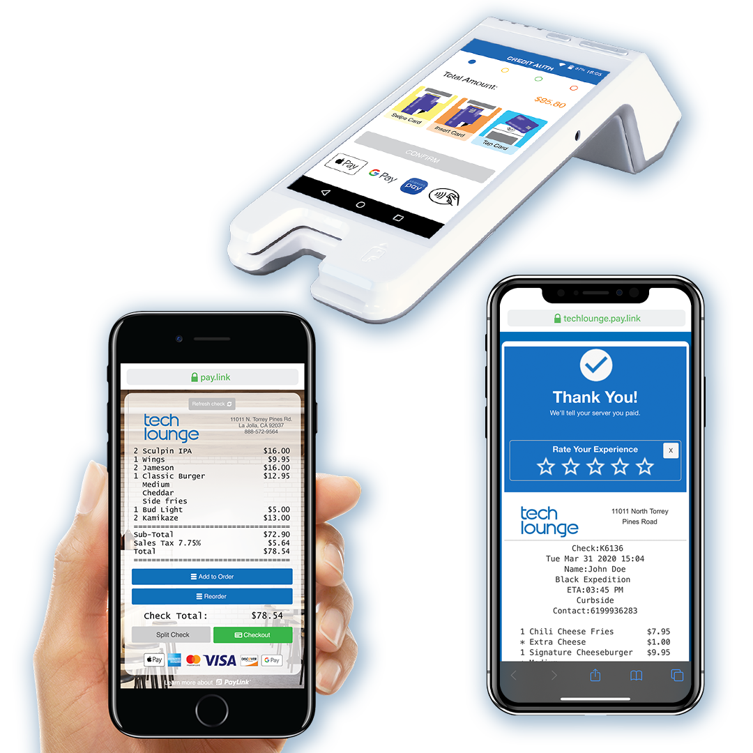 Food and beverage hospitality merchants and retailers alike realize they must implement contactless payments and mobile optimized business solutions to build trust with consumers and improve hygiene in their business. We created the PayLink® mobile commerce platform to provide merchants with the next generation in contactless ordering and contactless payment technology. With PayLink, patrons can retrieve their check from their mobile device, add items to their order and pay. PayLink brings a whole new meaning to contactless payments by eliminating the need for consumers to physically interact with staff to order and checkout. PayLink is a one of a kind social distancing commerce solution for both online and in-store business operations.